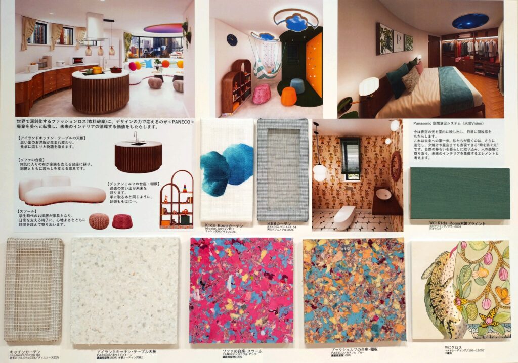 テーマは「幸せを紡ぐ未来のインテリア空間」、インテリアの力で、その空間に囲まれた人たちが幸福を感じられる”未来を見据えたインテリア空間”を自由な発想で壁紙・ウィンドートリートメント・床材などのインテリアエレメントを使用した理想のプランを提案するものでした。